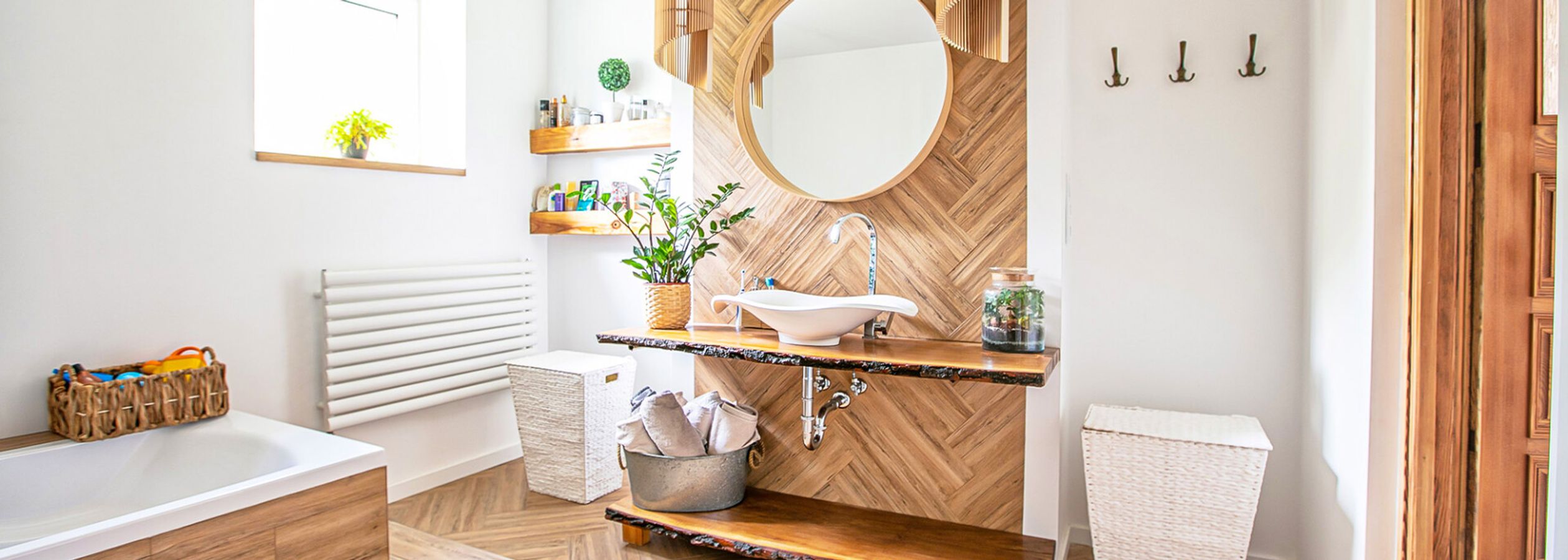 Se você gosta de organização, pode usar caixas organizadoras para guardar as toalhas e nichos para deixar à mostra objetos de uso, quem sabe até um difusor para espalhar aquele cheirinho de casa nova. Com tudo no lugar, resta colocar um tapete bem lindo no chão e curtir o seu banheiro com cara novo!